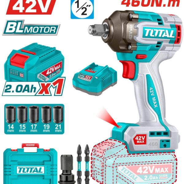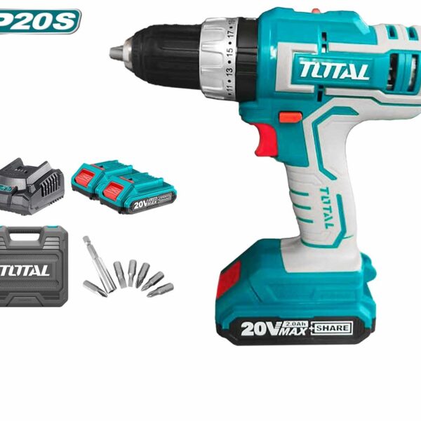طقم كومبو شنيور 20فولت 2/1″ 500نيوتن 1بطارية 2امبير +طقم لقم 152ق توتال THKTHP31522
