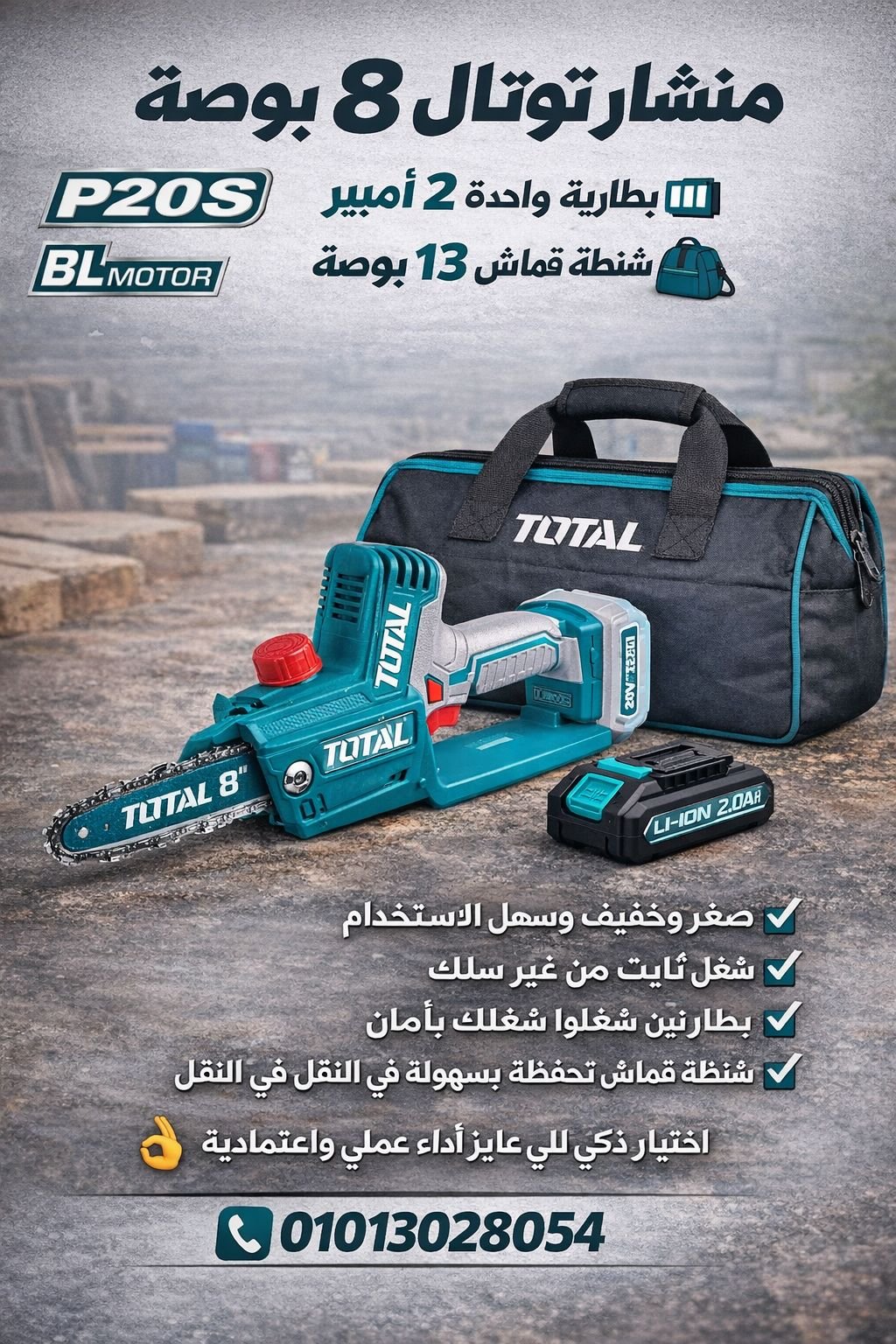 منشار شجر 20فولت 12"١بطاريه 4امبير توتال_TGSLI20128G